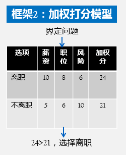 加权打分模型可以由你自己设定影响决策的关键因素,并且设定不同因素的权重。